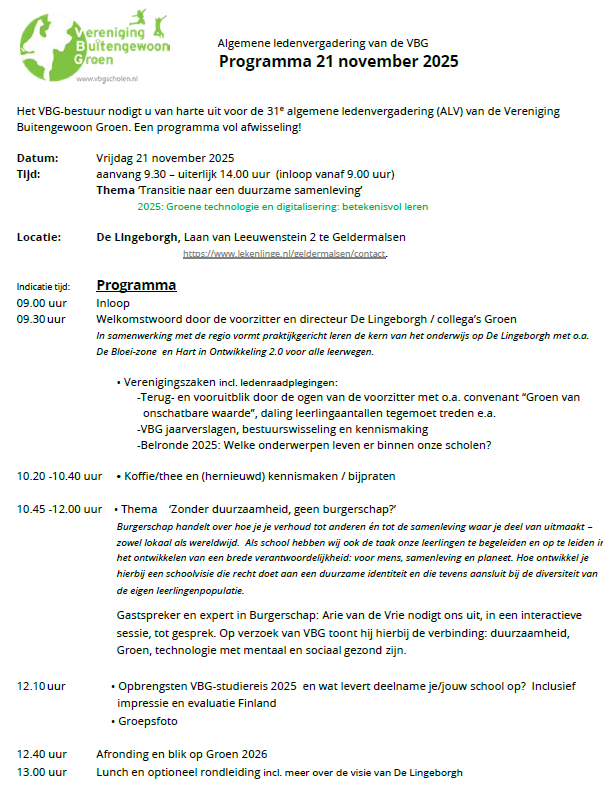 Voor het gehele programma, zichtbaar in pdf, klik op onderstaande link: Uitnodiging & Programma VBG_ALV 21 nov 2025 v2